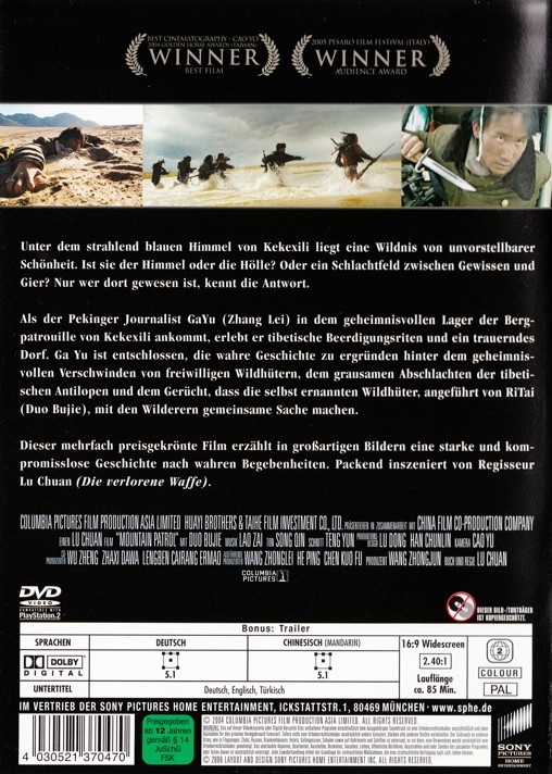 Als der Pekinger Journalist Ga Yu in dem geheimnisvollen Lager der Bergpatrouille von Kekexili ankommt, erlebt er tibetische Beerdigungsriten und ein trauendes Dorf Ga Yu ist entschlossen, die wahre Geschichte zu ergründen hinter dem geheimnisvollen Verschwinden von freiwilligen Wildhütern, dem grausamen Abschlachten der tibetischen Antilopen und dem Gerücht, dass die selbst ernannten Wildhüter, angeführt von Ri'Tai, mit den Wilderern gemeinsame Sache machen...