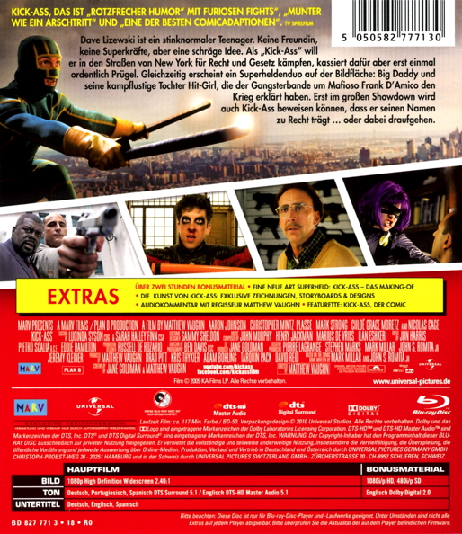 Dave Lizewski ist ein stinknormaler Teenager. Keine Freundin, keine Superkräfte, aber eine schräge Idee. Als "Kick-Ass" will er in den Strassen von New York für Recht und Gesetz kämpfen, kassiert dafür aber erst einmal ordentlich Prügel. Gleichzeitig erscheint ein Superheldenduo auf der Bildfläche: Big Daddy und seine kampflustige Tochter Hit-Girl, die der Gangsterbande um Mafioso Frank D’Amico den Krieg erklärt haben. Erst im grossen Showdown wird auch Kick-Ass beweisen können, dass er seinen Namen zu Recht trägt... oder dabei draufgehen.