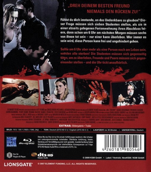 Fühlst du dich imstande, an das Undenkbare zu glauben? Dieser Frage müssen sich sieben Studenten stellen, als sie in einer abseits gelegenen Ferienwohnung ihren Abschluss feiern, denn schon um 6 Uhr am nächsten Morgen müssen sechs von ihnen tot sein - nur einer kann überleben. Wer immer es sein wird, diese Person kann frei und ungehindert gehen. Sollte um 6 Uhr aber mehr als eine Person noch Leben sein, werden alle sterben! Die Studenten müssen sich gegenseitig töten, um zu überleben, Freunde und Paare müssen sich gegeneinander stellen - und die Uhr tickt unaufhörlich...
