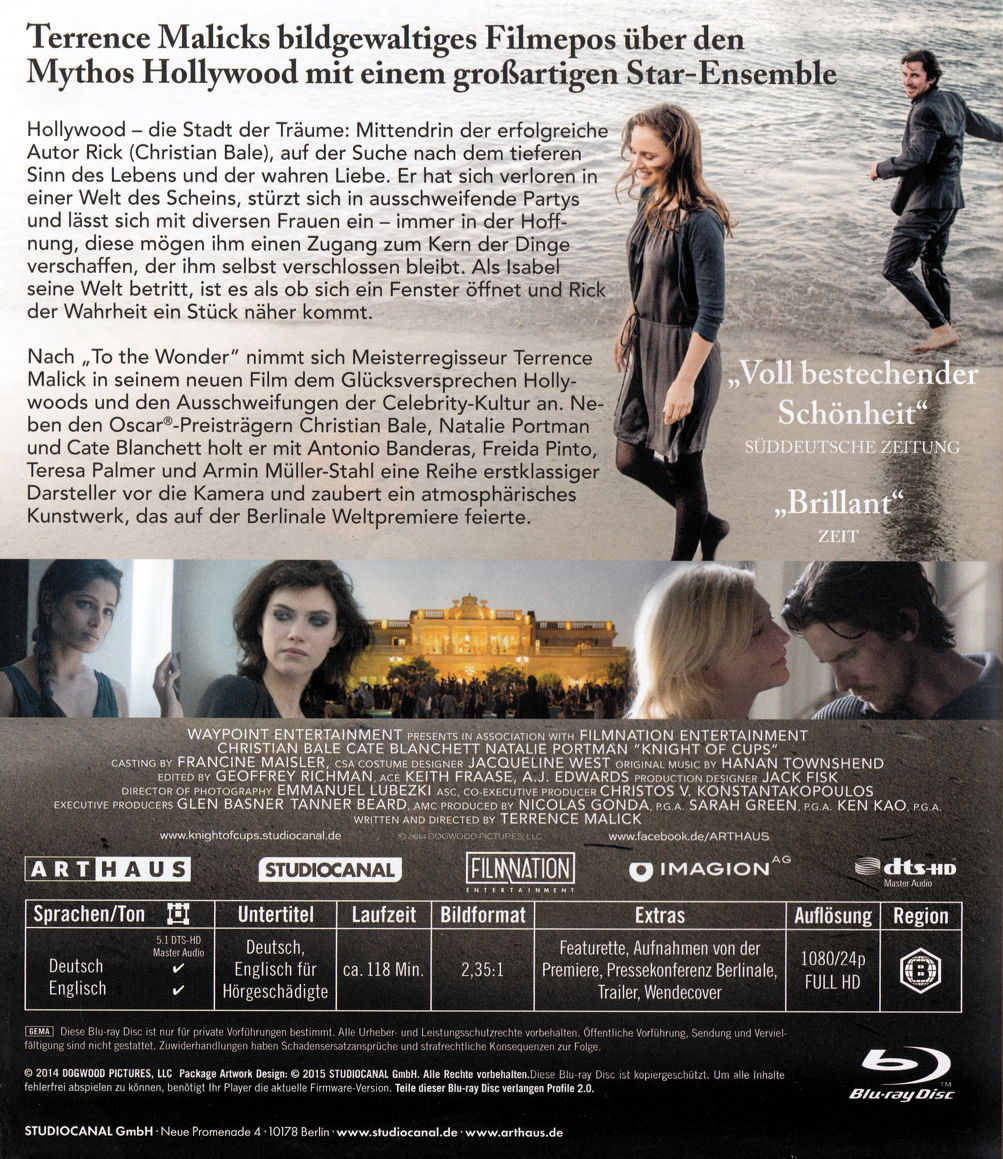 Christian Bale, Cate Blanchett, Natalie Portman, Brian Dennehy, Antonio Banderas, Jack Fisk, Jacqueline West, Francine Maisler, Glen Basner, Geoffrey Richman...Terrence Malick, Emmanuel Lubezki, Nicolas Gonda, Sarah Green, Tanner Beard, Keith Fraase, Ken Kao, A.J. Edwards