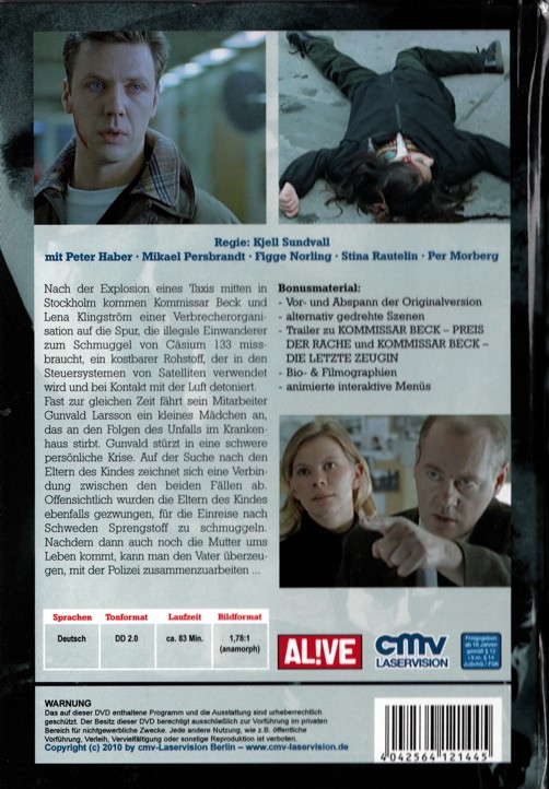 Nach der Explosion eines Taxis mitten in Stockholm kommen Kommissar Beck und Lena Klingström einer Verbrecherorganisation auf die Spur, die illegale Einwanderer zum Schmuggel von Cäsium 133 missbraucht, ein kostbarer Rohstoff, der in den Steuersystemen von Satelliten verwendet wird und bei Kontakt mit der Luft detoniert. Fast zur gleichen Zeit fährt sein Mitarbeiter Gunvald Larsson ein kleines Mädchen an, das an den Folgen des Unfalls im Krankenhaus stirbt. Gunvald stürzt in eine schwere persönliche Krise. Auf der Suche nach den Eltern des Kindes zeichnet sich eine Verbindung zwischen den beiden Fällen ab. Offensichtlich wurden die Eltern des Kindes ebenfalls gezwungen, für die Einreise nach Schweden Sprengstoff zu schmuggeln. Nachdem dann auch noch die Mutter ums Leben kommt, kann man den Vater überzeugen, mit der Polizei zusammenzuarbeiten...
