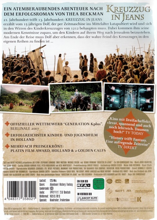 21. Jahrhundert trifft 13. Jahrhundert: 'Kreuzzug in Jeans' erzählt vom 15-jährigen Dolf, der per Zeitmaschine ins Mittelalter katapultiert wird und sich in den Wirren des Kinderkreuzzuges von 1212 behaupten muss. Dabei kommen ihm seine modernen Kenntnisse und sein Ideenreichtum zupass, und Dolf kann seinen neuen Freunden gegen Krankheiten, marodierende Raubritter und bei der Überquerung der unüberwindbar scheinenden Alpen auf ihrem Weg nach Jerusalem beistehen. Am Ende der Reise muss Dolf aber erkennen, dass der wahre Feind des Kreuzzuges in den eigenen Reihen zu finden ist.
