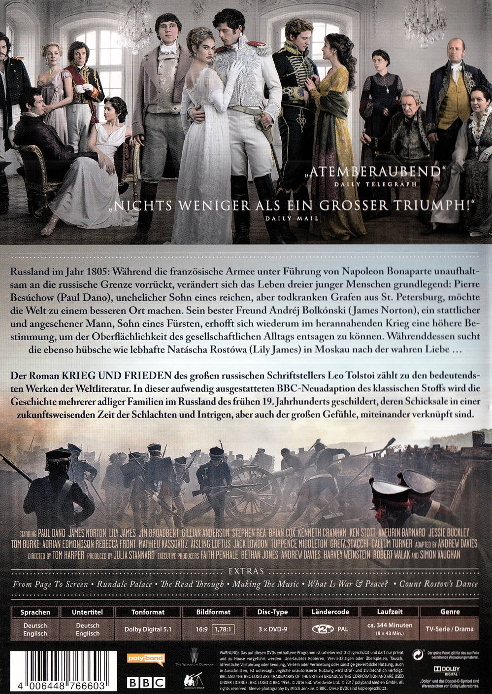 Russland im Jahr 1805: Während die französische Armee unter Führung von Napoleon Bonaparte unaufhaltsam an die russische Grenze vorrückt, verändert sich das Leben dreier junger Menschen grundlegend: Pierre Besúchow, unehelicher Sohn eines reichen, aber todkranken Grafen aus St. Petersburg, möchte die Welt zu einem besseren Ort machen. Sein bester Freund Andréj Bolkónski, ein stattlicher und angesehener Mann, Sohn eines Fürsten, erhofft sich wiederum im heran nahenden Krieg eine höhere Bestimmung, um der Oberflächlichkeit des gesellschaftlichen Alltags entsagen zu können. Währenddessen sucht die ebenso hübsche wie lebhafte Natáscha Rostówa in Moskau nach der wahren Liebe...