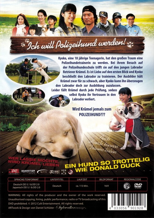 Kyoko, eine 18 jährige Teenagerin, hat den großen Traum eine Polizeihundetrainerin zu werden. Bei ihrem Besuch auf der Polizeihundeschule trifft sie auf den jungen Labrador Retriever Krümel. Es ist Liebe auf den ersten Blick und Kyoko beschließt den Labrador zu trainieren. Der Ausbilder hält Krümel zwar für zu schwach, aber Kyoko kann ihn überzeugen den Labrador doch zur Ausbildung zuzulassen. Leider fällt Krümel durch jede Prüfung, sodass selbst Kyoko ihr Vertrauen in den Labrador verliert. Wird Krümel jemals zum Polizeihund???