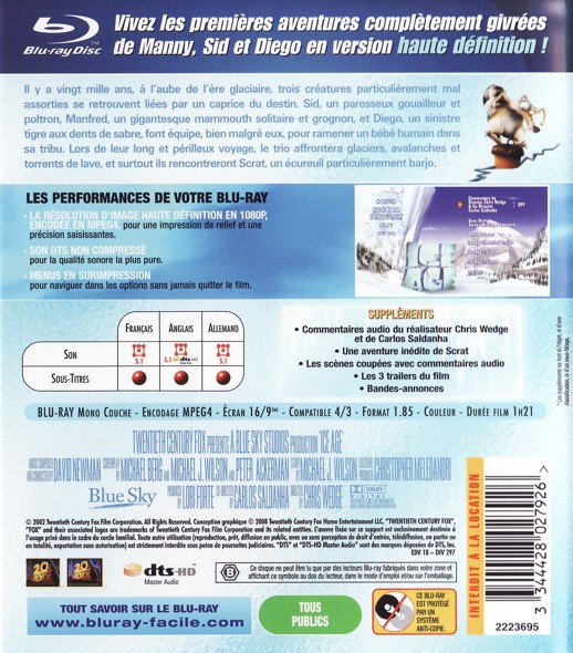 Vingt mille ans avant notre ère, lorsque Scrat, un rongeur obstiné, fend la banquise et déclenche un nouvel Age de Glace, une vaste cohorte de mammifères s'assemble et commence à émigrer vers le sud. Manny, un mammouth solitaire qui n'en fait qu'à sa tête, choisit d'aller vers le nord et se voit bientôt rejoint par Sid, un petit paresseux volubile en quête de protecteur.