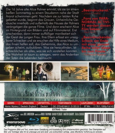 Die 16 Jahre alte Alice Palmer ertrinkt, als sie an einem heissen Sommertag zu einem Staudamm nahe der Stadt Ararat schwimmen geht. Nachdem sie zur letzten Ruhe gebettet wurde, beginnt das Grauen. Unheimliche Geräushe innerhalb und ausserhalb der Hauses der Palmers verängstigen die ganze Filme. Und dann erscheint Alice im Hintergrund von Bildern und auf Filmmaterial. Erst unscheinbar, dann immer auffälliger manifestiert sich der Geist der jungen Frau. Ihre Eltern erfasst ein unsagbarer Schrecken und sie ersuchen die Hilfe eines Medium, das ihnen helfen soll, das Geheimnis, das Alice zu umgeben scheint, aufzuklären. Was sie herausfinden, ist schrecklicher als alles, was sie sich vorstellen konnten. Die Wahrheit ist kaum zu ertragen, wenn das Andenken der toten die Lebenden heimsucht.