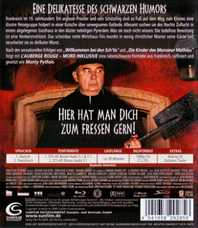 Frankreich im 19. Jahrhundert: Ein argloser Priester und sein Schützling sind zu Fuss auf dem Weg zum Kloster, eine illustre Reisegruppe holpert in einer Kutsche über unwegsames Gelände. Allesamt suchen sie des Nachts Zuflucht in einem abgelegenen Gasthaus in den düster nebeligen Pyrenäen. Was sie noch nicht wissen: Das scheinbar nette Wirtshaus-Trio mordet in wenig christlicher Manier seine Gäste und verarbeitet sie zu delikater Wurst.