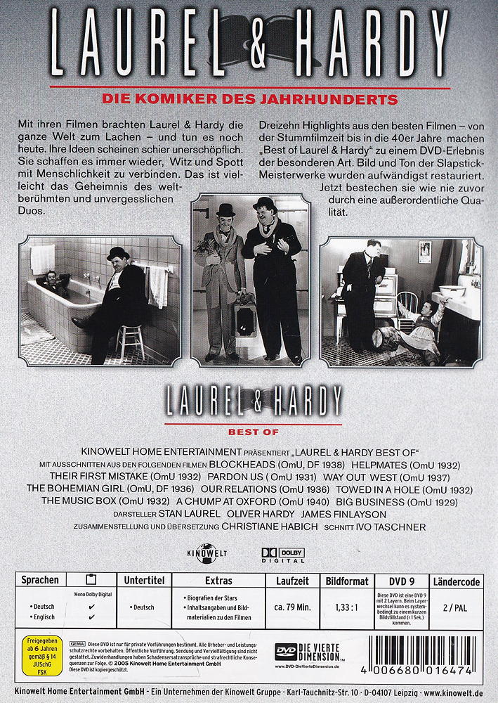 Dreizehn Highlights aus den besten Filmen - von der Stummfilmzeit bis in die 40er Jahre machen „Best of Laurel & Hardy" zu einem DVD-Erlebnis der besonderen Art. Bild und Ton der Slapstick-Meisterwerke wurden aufwändigst restauriert.