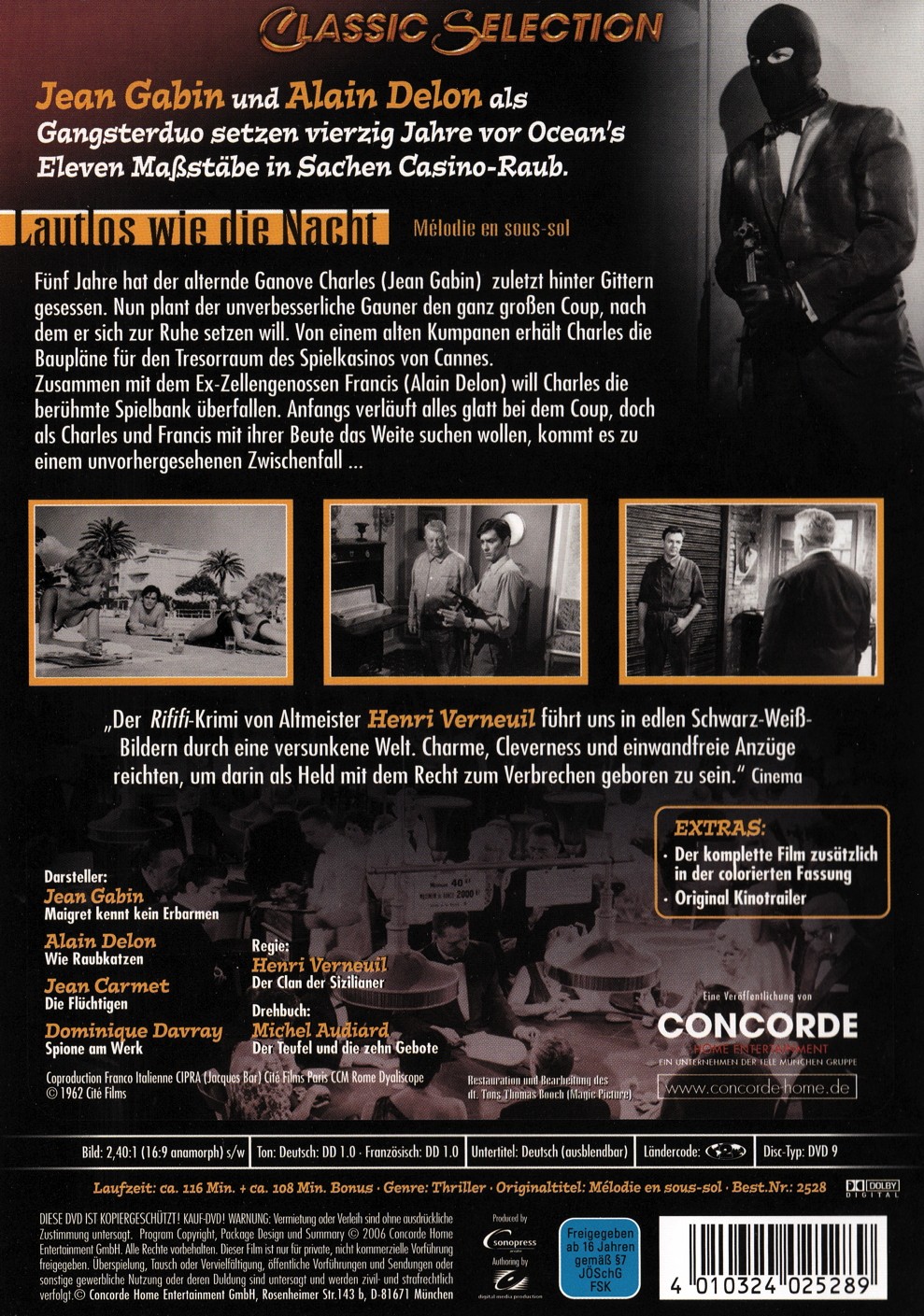 - Schauspieler Alain Delon, Jean Carmet, Jean Gabin, Henri Virlojeux, Maurice Biraud, Germaine Montero, Claude Cerval, Jimmy Davis, Carla Marlier, Viviane Romance