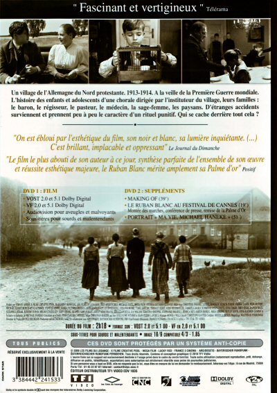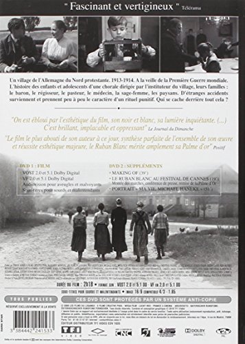 Un village protestant de l’Allemagne du Nord à la veille de la Première Guerre mondiale (1913/1914). L’histoire d’enfants et d’adolescents d’une chorale dirigée par l’instituteur du village et celle de leurs familles: le baron, le régisseur du domaine, le pasteur, le médecin, la sage-femme, les paysans... D’étranges accidents surviennent et prennent peu à peu le caractère d’un rituel punitif. Qui se cache derrière tout cela?
