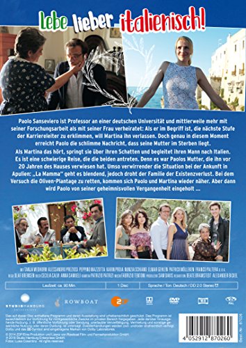 Paolo Sanseviero ist Professor an einer deutschen Universität und mittlerweile mehr mit seiner Forschungsarbeit als mit seiner Frau verheiratet: Als er im Begriff ist, die nächste Stufe der Karriereleiter zu erklimmen, beschliesst Martina, ihn zu verlassen. Genau in diesem Moment erreicht Paolo die schlimme Nachricht, dass seine Mutter im Sterben liegt. Als Martina das hört, springt sie über ihren Schatten und begleitet ihren Mann nach Italien. Es ist eine schwierige Reise, die die beiden antreten. Denn es war Paolos Mutter, die ihn vor 20 Jahren des Hauses verwiesen hat. Umso verwirrender die Situation bei der Ankunft in Apulien: La Mamma geht es blendend, jedoch droht der Familie der Existenzverlust. Bei dem Versuch die Olivenöl-Plantage zu retten, kommen sich Paolo und Martina wieder näher. Aber dann wird Paolo von seiner geheimnisvollen Vergangenheit eingeholt...