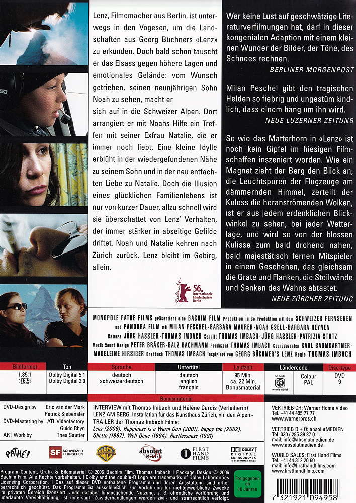 Der Filmemacher Lenz verlässt seine Heimatstadt Berlin, um in den Vogesen die Hintergründe von Georg Büchners Fragment "Lenz" zu erforschen. Doch bald schon tauscht er die elsässische Landschaft gegen höhere Lagen und emotionaleres Gelände: vom Wunsch getrieben, seinen neunjährigen Sohn Noah zu sehen, macht er sich auf nach dem Wintersportort Zermatt in den Schweizer Alpen. Dort arrangiert er mit Noahs Hilfe ein Treffen mit seiner Exfrau Natalie, die er immer noch liebt. Eine kleine Idylle erblüht in der wieder gefundenen Nähe zu seinem Sohn und in der neu entfachten Liebe zu Natalie. Doch die Illusion eines glücklichen Familienlebens ist nur von kurzer Dauer, allzu schnell wird sie überschattet von Lenz' Verhalten, der immer stärker in abseitige Gefilde driftet. Noah und Natalie kehren nach Zürich zurück. Lenz bleibt im Gebirg, allein.