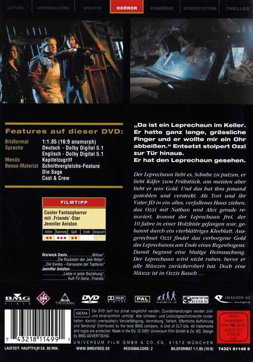 Der Leprechaun liebt es, Schuhe zu putzen, er liebt Käfer zum Frühstück, am meisten aber liebt er sein Gold. Und das hat ihm jemand gestohlen und versteckt. Als Tori und ihr Vater JD in ein altes, verfallenes Haus ziehen, das Ozzi mit Nathan und Alex gerade renoviert, kommt der Leprechaun frei, der 10 Jahre in einer Holzkiste gefangen war, gebannt durch ein vierblättriges Kleeblatt. Ausgerechnet Ozzi findet das verborgene Gold des Leprechauns am Ende eines Regenbogens. Damit beginnt eine blutige Heimsuchung. Der Leprechaun wird nicht ruhen, bevor er alle Münzen zurückerobert hat. Doch eine Münze ist in Ozzis Bauch...