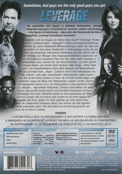 Dazu werden ihm drei Berufsverbrecher zur Seite gestellt: Computer-Hacker und Technik-Genie Hardison (Aldis Hodge, "Friday Night Lights"), die Fassadenkletterin Parker (Beth Riesgraf) und Nahkampfexperte Eliot (Christian Kane, "Angel"). Zusätzlich holt er sich Unterstützung von einer früheren, nicht ganz unemotionalen Bekanntschaft, Sophie Devereaux. Sie ist die schöne Zockerin im Team, die mit ihren dunklen Augen und sinnlichen Lippen die Blicke ihrer Mitmenschen magisch anzieht. Sophies herausragendes Können ist es, als Schauspielerin in jede erdenkliche Rolle zu schlüpfen - egal welcher Nationalität. Zunächst muss Nathan nun dafür sorgen, dass aus dem bunten Haufen von kriminellen Einzelgängern, ein funktionsfähiges Team wird. Tatsächlich gelingt es ihnen gemeinsam, die Pläne an sich zu bringen. Wie sich jedoch zeigt, werden sie von ihrem eigenen Auftraggeber aufs Kreuz gelegt: Die Pläne gehörten gar nicht seiner Firma...