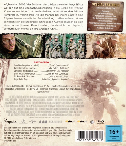 Afghanistan 2005: Vier Soldaten der US-Spezialeinheit Navy SEALs werden mit der Aufgabe, den Aufenthaltsort eines führenden Taliban-Kämpfers zu verifizieren, auf eine Beobachtungsmission in die Berge der afghanischen Provinz Kunar entsendet. Als die Männer bei ihrem Einsatz eine folgenschwere moralische Entscheidung treffen müssen, überschlagen sich die Ereignisse: Kommunikativ abgeschnitten von ihrer Einheit sehen sich die Soldaten innerhalb kürzester Zeit einer Übermacht von Taliban-Kämpfern gegenüber. Ohne jeden Ausweg müssen sie sich in dem unwegsamen Gebiet der Berge Afghanistans einem aussichtslosen Kampf stellen, der sie nicht nur physisch, sondern auch mental an die Grenzen des menschlich Erträglichen führt…