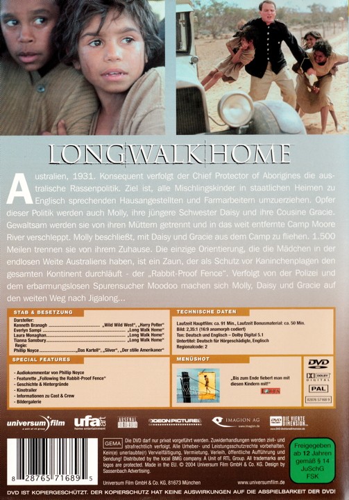 Jigalong, Australien, 1931. Konsequent verfolgt der Chief Protector of Aborigines, A.O. Neville die australische Rassenpolitik. Ziel ist, alle Mischlingskinder von ihren Eltern zu trennen, um sie in staatlichen Heimen zu englisch sprechenden Hausangestellten und Farmarbeitern umzuerziehen. Opfer dieser Politik werden auch die 14-Jährige Molly, ihre jüngere Schwester Daisy und ihre Cousine Gracie. Gewaltsam werden sie von ihren Müttern getrennt und in das weit entfernte Camp Moore River verschleppt. Molly beschliesst, mit Daisy und Gracie aus dem Camp zu fliehen. 1.500 Meilen trennen sie von ihrem Zuhause. Die einzige Orientierung, die die Mädchen in der endlosen Weite Australiens haben, ist ein Zaun, der als Schutz vor Kaninchenplagen den gesamten Kontinent durchläuft. Doch den müssen sie erst mal finden. Verfolgt von der Polizei und dem erbarmungslosen Spurensucher Moodoo machen sich Molly, Daisy und Gracie auf den weiten Weg nach Jigalong...