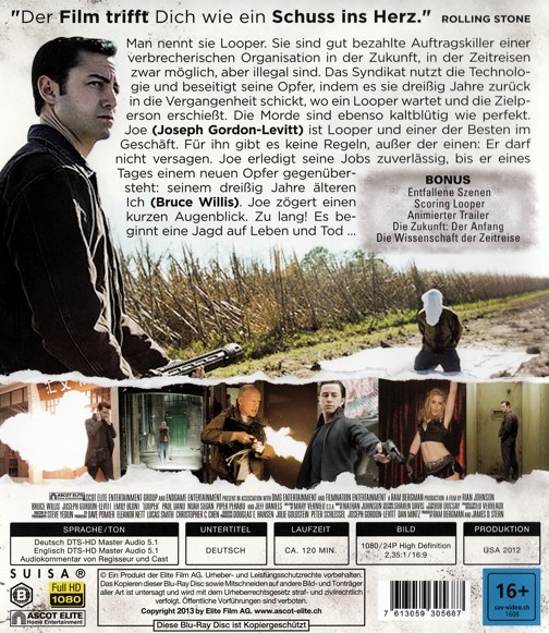 Man nennt sie Looper. Sie sind gut bezahlte Auftragskiller einer verbrecherischen Organisation in der Zukunft, in der Zeitreisen zwar möglich, aber illegal sind. Das Syndikat nutzt die Technologie und beseitigt seine Opfer, indem es sie dreissig Jahre zurück in die Vergangenheit schickt, wo ein Looper wartet und die Zielperson erschiesst. Die Morde sind ebenso kaltblütig wie perfekt. Joe (Joseph Gordon-Levitt) ist Looper und einer der Besten im Geschäft. Für ihn gibt es keine Regeln, ausser der einen: Er darf nicht versagen. Joe erledigt seine Jobs zuverlässig, bis er eines Tages einem neuen Opfer gegenübersteht: seinem dreissig Jahre älteren Ich (Bruce Willis). Joe zögert einen kurzen Augenblick. Zu lang! Es beginnt eine Jagd auf Leben und Tod...
