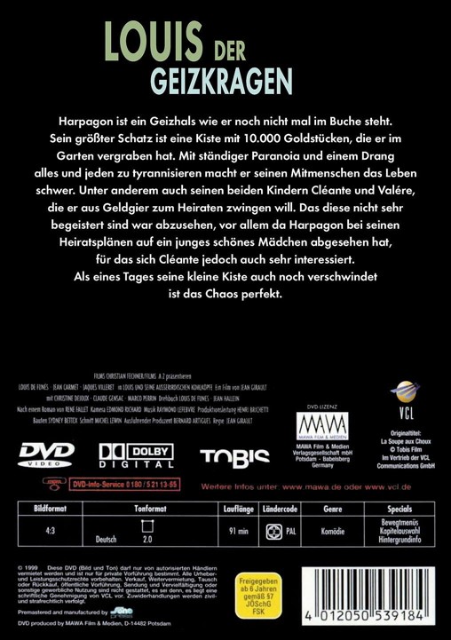Frankreich, 17. Jahrhundert: Harpagon ist der personifizierte Geiz. Während er seine Tochter Mitgift sparend mit dem betagten Anselme vermählen möchte und dem Sohn eine alte, aber betuchte Witwe auserkoren hat, giert er selbst nach der hübschen Nachbarstochter. Seine Kinder sind gar nicht begeistert.