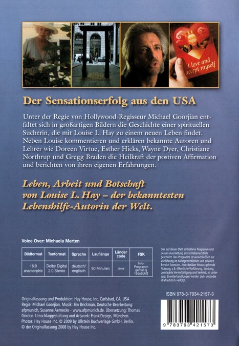 Auf der Grundlage ihres legendären Bestsellers YOU CAN HEAL YOUR LIFE entstand dieser große amerikanische Kino-Film über Leben, Arbeit und Botschaft von Louise L. Hay - der bekanntesten Lebenshilfe-Autorin der Welt.