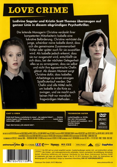 - Schauspieler Kristin Scott Thomas, Ludivine Sagnier, Olivier Rabourdin, Gérald Laroche, Marie Guillard, Patrick Mille, Matthew Gonder, Mike Powers, julien Rochefort, Guillaume Marquet