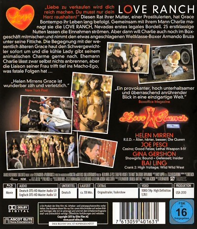 Diesen Rat ihrer Mutter, einer Prostituierten, hat Grace Bontempo ihr Leben lang befolgt. Gemeinsam mit ihrem Mann Charlie managt sie die LOVE RANCH, Nevadas erstes legales Bordell. 25 erstklassige Nutten lassen die Einnahmen strömen. Aber dann will Charlie auch noch im Boxgeschäft mitmischen und nimmt den etwas angeschlagenen Weltklasse-Boxer Armando Bruza unter seine Fittiche. Die Begegnung mit der wesentlich älteren Grace haut den Schwergewichtler sofort um und die kühle Lady gibt seinem animalischen Charme gerne nach. Ehemann Charlie lässt zwar selbst nichts anbrennen, aber die Liaison seiner Frau trifft tief ins Macho-Ego, was fatale Folgen hat...