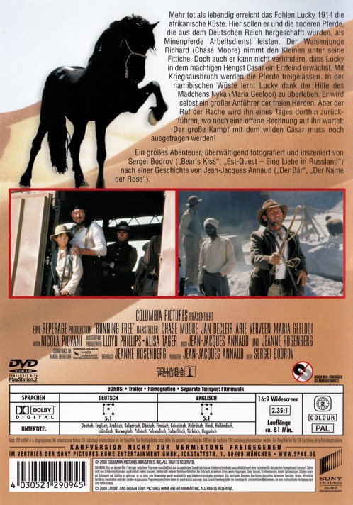 Mehr tot als lebendig erreicht das Fohlen Lucky 1914 die afrikanische Küste. Hier sollen er und die anderen Pferde, die aus dem Deutschen Reich hergeschafft wurden, als Minenpferde Arbeitsdienst leisten. Der Waisenjunge Richard (Chase Moore) nimmt den kleinen unter seine Fittiche. Doch auch er kann nicht verhindern, dass Lucky in dem mächtigen Hengst Cäsar ein Erzfeind erwächst. Mit Kriegsausbruch werden die Pferde freigelassen. In der namibischen Wüste lernt Lucky dank der Hilfe des Mädchens Nyka (Maria Geelooi) zu überleben. Er wird selbst ein großer Anführer der freien Herden. Aber der Ruf der Rache wird ihn eines Tages dorthin zurückführen, wo noch eine offene Rechnung auf ihn wartet: Der große Kampf mit dem wilden Cäsar muß noch ausgetragen werden!