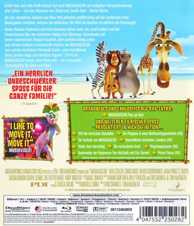 Ben Stiller, Chris Rock, David Schwimmer, Jada Pinkett Smith, Sacha Baron Cohen, Cedric the Entertainer, Andy Richter, Tom McGrath, Christopher Knights, Chris Miller...Conrad Vernon, Eric Darnell, David Cowgill, Stephen Apostolina, Elisa Gabrielli, Devika Parikh, David P. Smith, Cody Cameron, Bob Saget, Jan Josef Liefers