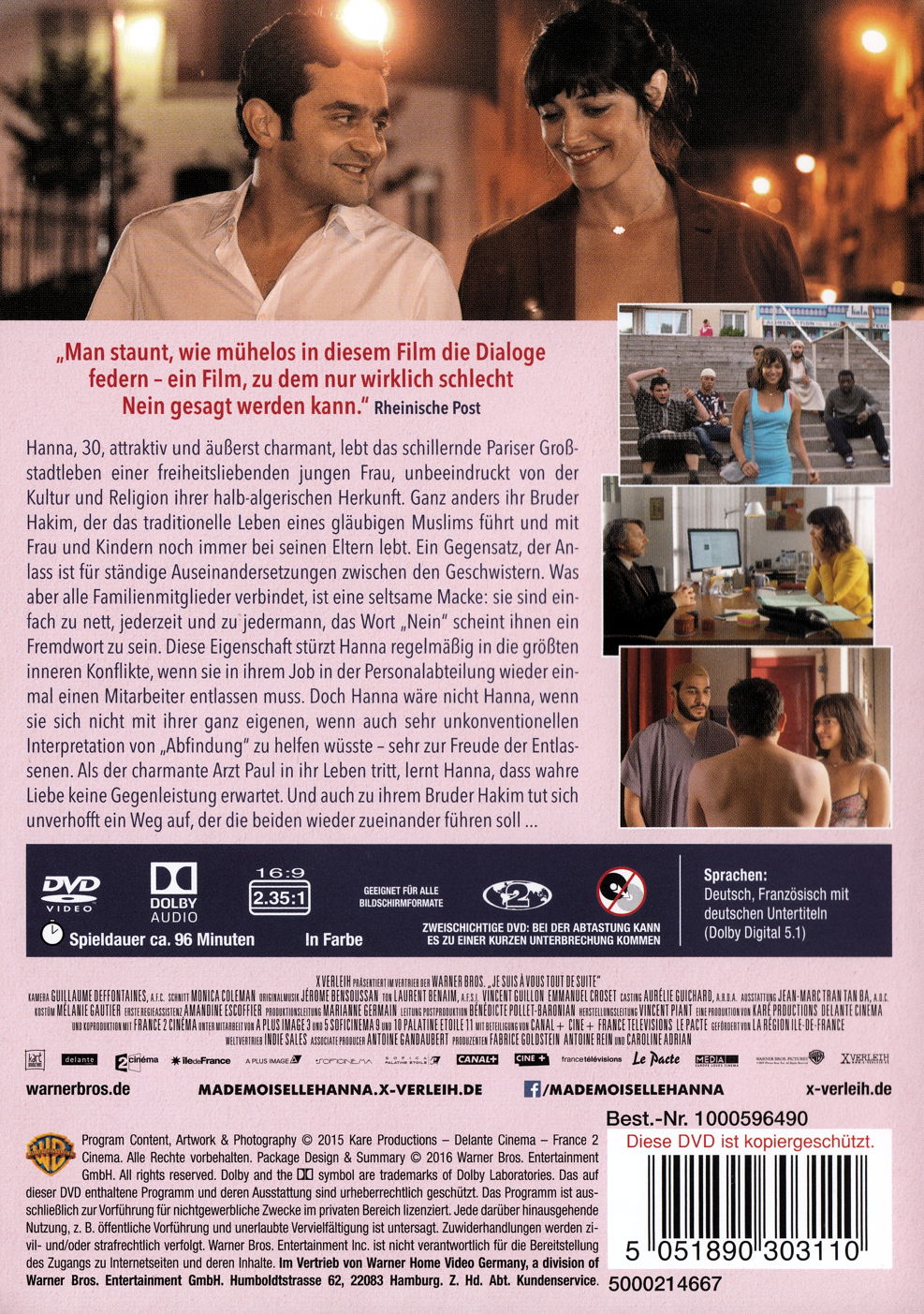 Die 30-jährige Hanna Belkacem ist eine charmante, attraktive Frau, die in Paris ihre Freiheit geniesst, während ihr Bruder Hakim sich streng an den Koran hält und mit Frau und Kindern nach wie vor bei seinen Eltern lebt. Eines hat die Familie Belkacem gemeinsam: keinem der Angehörigen fällt es leicht, Nein zu sagen. Für Hanna, die in einer Personalabteilung arbeitet, wird das vor allem immer dann zum Problem, wenn sie mal wieder einen Mitarbeiter feuern muss. Ihre Kompensationsstrategie ist ausgefallen – sie schläft mit den Gefeuerten, damit die sich am Ende über ihre Entlassung freuen. Doch als sie den freundlichen Arzt Paul kennenlernt, lernt Hanna, dass wahre Liebe keine Gegenleistung braucht. Und plötzlich hat sie auch die Chance, das Verhältnis zu ihrem Bruder Hakim zu verbessern...