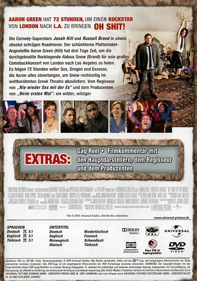 Die Comedy-Superstars Jonah Hill und Russell Brand in einem absolut schrägen Roadmovie: Der schüchterne Plattenlabel-Angestellte Aaron Green (Jonah Hill) hat 3 Tage Zeit, um die durchgeknallte Rocklegende Aldous Snow (Russell Brand) für sein grosses Comebackkonzert von London nach Los Angeles zu holen. Es folgen 72 Stunden voller Sex, Drogen und Exzesse, die Aaron alles abverlangen, um Snow rechtzeitig im weltberühmten Greek Theatre abzuliefern.
