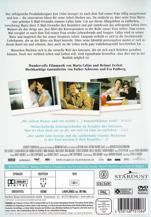 Der erfolgreiche Produktdesigner Jost ist nach dem Tod seiner Frau völlig ausgebrannt und leer - die innovativen Ideen für seine Arbeit bleiben aus. Da entdeckt er, dass eine Frau Maria eine geheime E-Mail-Freundin namens Callas hatte. Um aus ihrem Alltagsleben zu entfliehen, verschwieg Maria ihrer E-Mail-Freundin ihre Krankheit und gab stattdessen das aufregende Leben ihres Mannes als das ihrige aus. Jost führt die Korrespondenz in der Rolle seiner Frau weiter. Zum ersten Mal verspürt er nach dem Tod seiner Frau wieder Lebensfreude und Neugier. Callas wird zu seiner Muse und inspiriert ihn bei seiner kreativen Arbeit. Langsam verliebt er sich in die faszinierende Unbekannte, die an der Küste ein Hotel betreibt. Ohne seine Identität preiszugeben mietet er sich in ihrem Hotel ein und erkennt, dass auch sie ihr Leben nicht ganz wahrheitsgemäß beschrieben hat...