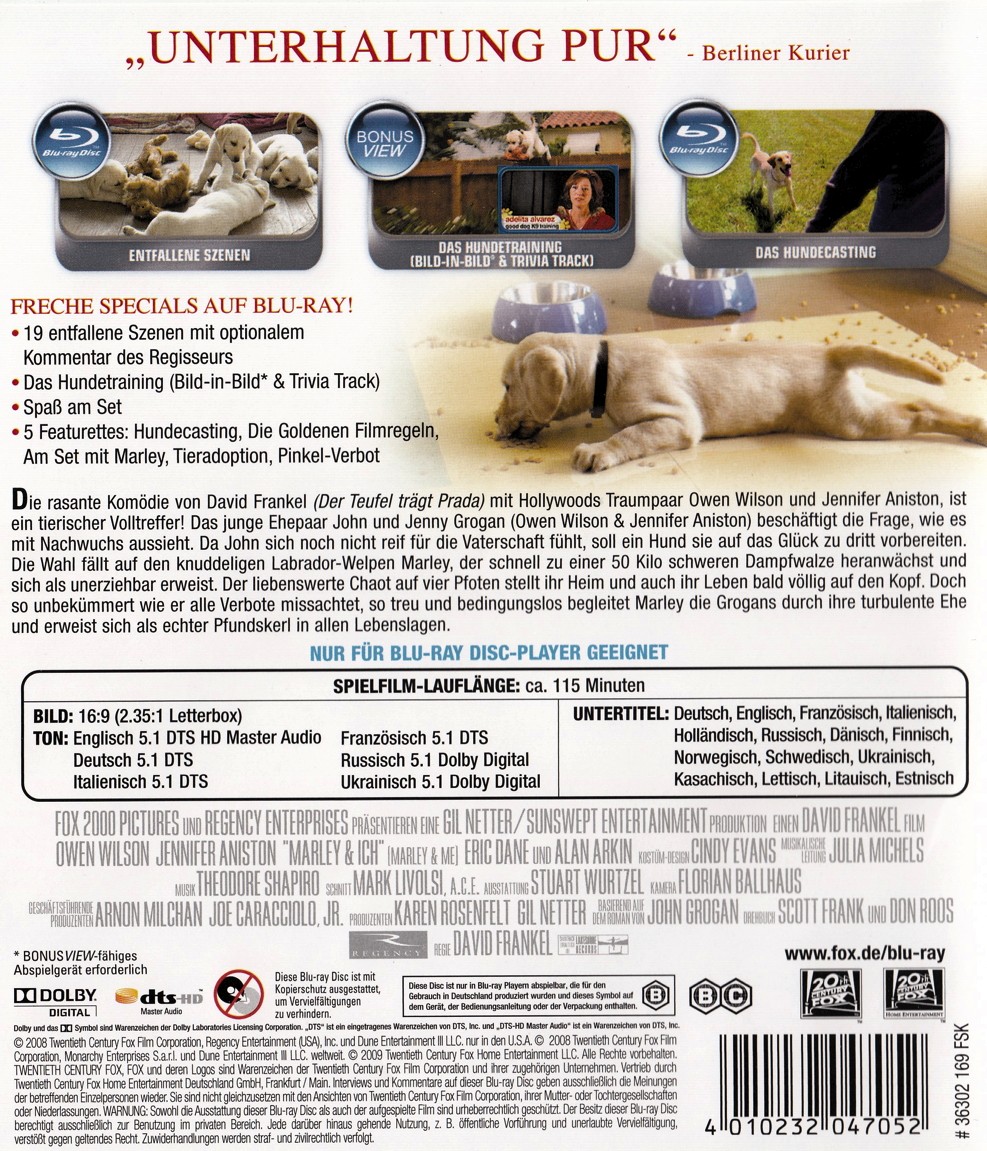 Das junge Ehepaar John und Jenny Grogan (Owen Wilson & Jennifer Aniston) beschäftigt die Frage, wie es mit Nachwuchs aussieht. Da John sich noch nicht reif für die Vaterschaft fühlt, soll ein Hund sie auf das Glück zu Dritt vorbereiten. Die Wahl fällt auf den knuddeligen Labrador-Welpen Marley, der schnell zu einer 50 Kilo schweren Dampfwalze heranwächst und sich als unerziehbar erweist. Der liebenswerte Chaot auf vier Pfoten stellt ihr Heim und auch ihr Leben bald völlig auf den Kopf. Doch so unbekümmert wie er alle Verbote missachtet, so treu und bedingungslos begleitet Marley die Grogans durch ihre turbulente Ehe und erweist sich als echter Pfundskerl in allen Lebenslagen.