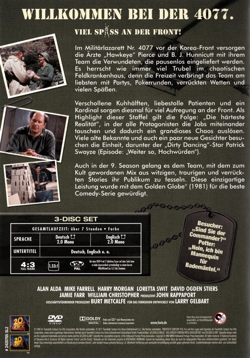 Im Militärlazarett Nr. 4077 vor der Korea-Front versorgen die Ärzte "Hawkeye" Pierce und B.J. Hunnicutt mit ihrem Team die Verwundeten, die pausenlos eingeliefert werden. Es herrscht wie immer viel Trubel im chaotischen Feldkrankenhaus, denn die Freizeit verbringt das Team am liebsten mit Partys, Pokerrunden, verrückten Wetten und viel Späßen.