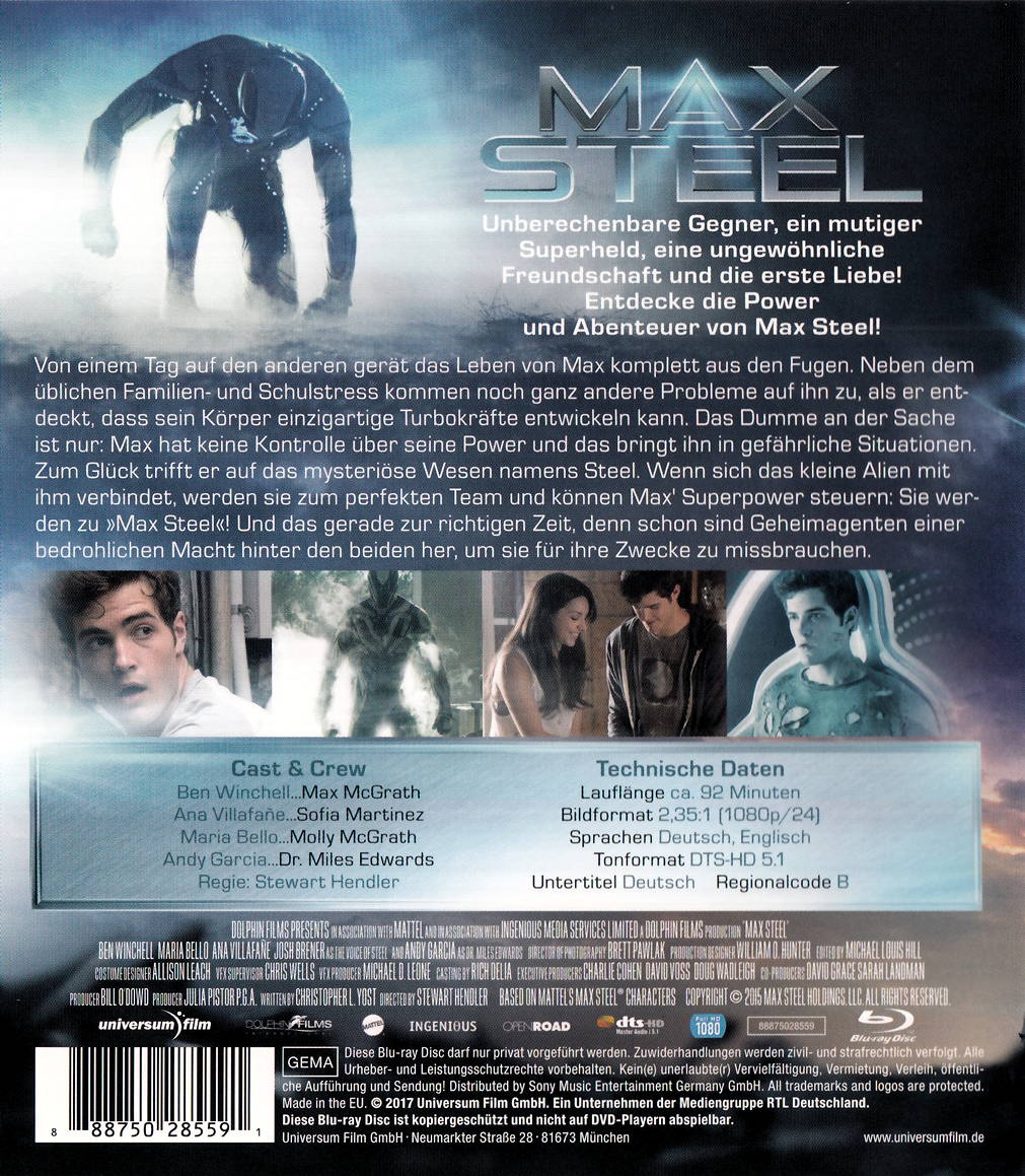 Von einem Tag auf den anderen gerät das Leben von Max total durcheinander. Nicht nur, dass er völlig neu in der Stadt ist, seine überfürsorgliche Mutter im Schlepptau hat und seit dem ersten Tag an der neuen Schule die süsse Sofia nicht mehr aus dem Kopf kriegt. Das alles könnte er noch irgendwie managen. Doch es kommen noch ganz andere Probleme auf ihn zu, als er entdeckt, dass sein Körper einzigartige Turbokräfte entwickeln kann. Das Dumme an der Sache ist nämlich: Max kann sie nicht kontrollieren, und deshalb bringen sie ihn in die merkwürdigsten - ja sogar in gefährliche - Situationen. Max hat Angst, dadurch zum totalen Aussenseiter zu werden. Zum Glück trifft er, bevor die ganz grosse Katastrophe passieren kann, auf ein mysteriöses Wesen namens Steel. Wenn sich das kleine Alien mit ihm verbindet, werden sie zum perfekten Team und können zusammen Max' Superpower steuern: Sie werden zu "Max Steel"! Und das gerade zur richtigen Zeit, denn schon sind Geheimagenten einer bedrohlichen Macht hinter den beiden her, um sie für ihre Zwecke zu missbrauchen.