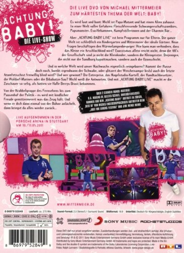 Live aufgenommen in der Porsche Arena in Stuttgart am 10. /11. 05. 2011Michl ist Papa-Mutant & hat einen Alien zuhause. In einer Welt voller Gefahren: Fleischfressende Schwangerschaftszombies, Pupsmonster, Eso-Hebammen, Kampfstillerinnen & der Charmin Bär. Aber ACHTUNG BABY! ist kein Programm nur für Eltern. Die ganze Welt ist schliessl. ein Kindergarten u. Mittermeier d. ideale Gärtner. Neue Fragen beschäftigen den Wärmelampenbesorger: Wie kann man verhindern, dass das Kleine ein Arschlochkind wird? Exorzismus allein reicht nicht, denn die AK´s der Gesellschaft sind ja nicht die Kleinkinder, sondern die Kleingeister. Diejenigen, die nicht nur die Sandburg kaputtmachen, sondern auch die Ozonschicht. Und in welche Welt wird unser Nachwuchs eigentl. reingeboren? Kommt d. Russe doch noch, bombt irgendwann der Schwabe od. glitzert der Weicheivampir bis(s) auch d. letzte Atomfetischist freiwillig blind wird? Und wer gewinnt? Die Enterprise, das Nagelstudio-Kartell, der Handtuchbesetzer, die Waldorf-Marines od. die Bibabutze-Sau? Michl weiss die Antworten & macht die Zuschauer so selig, als hätten sie Halle Berrys Brust bekommen. Von der Krabbelgruppe des Fernsehens bis zum Pausenhof der Politik - es wird mit kindlicher Freude gemittermeiertwas das Zeug hält.