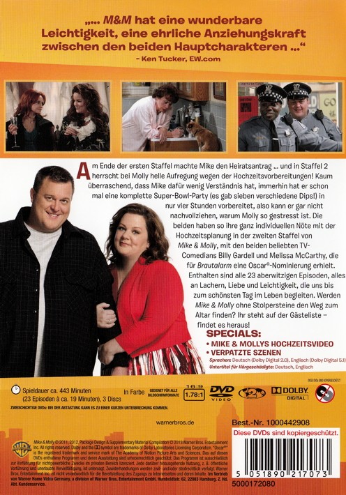 Am Ende der ersten Staffel machte Mike den Heiratsantrag... und in Staffel 2 herrscht bei Molly helle Aufregung wegen der Hochzeitsvorbereitungen. Kaum überraschend, dass Mike dafür wenig Verständnis hat, immerhin hat er schon mal eine komplette Super-Bowl-Party (es gab sieben verschiedene Dips.) in nur vier Stunden vorbereitet, also kann er gar nicht nachvollziehen, warum Molly so gestresst ist. Die beiden haben so ihre ganz individuellen Nöte mit der Hochzeitsplanung in der zweiten Staffel von Mike & Molly, mit den beiden beliebten TV-Comedians Billy Gardell und Melissa McCarthy, die für Brautjungfern eine Oscar Nominierung erhielt. Enthalten sind alle 23 aberwitzigen Episoden, alles an Lachern, Liebe und Leichtigkeit, die uns bis zum schönsten Tag im Leben begleiten. Werden Mike & Molly ohne Stolpersteine den Weg zum Altar finden? Ihr steht auf der Gästeliste – findet es heraus.