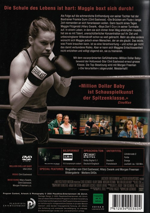 Frankie Dunn (Clint Eastwood) hat sein Leben als Trainer und Manager im Ring verbracht. Der Triumph einer Boxweltmeisterschaft ist ihm bislang allerdings versagt beglieben. Die entscheidende Regel, die er seinen Fightern beibringt, befolgt er auch selbst: Wichtiger als alles andere ist die eigene Deckung. Seit vielen Jahren ist er keine engere Beziehung mehr eingegangen. Nur einer darf isch sein Freund nennen: Ex-Boxer Scrap (Morgan Freeman), der in Frankies Boxhalle nach dem Rechten sieht. Als die 31-jährige Kellnerin Maggie Fitzgerald (Hilary Swank) im Trainingscenter auftaucht, knurrt Frankie: "Ich trainiere keine Frauen". Doch Maggie bleibt hartnäckig. Täglich übt sie mit unbändigem Talent und erstaunlicher Willenskraft. Sie ist unbeirrbar entschlossen, ihren einzigen Trau, ihre einzige Chance auf Anerkennung nicht aufzugeben...