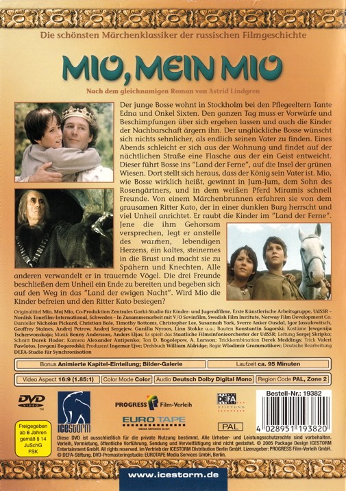 Der neunjährige Bo Wilhelm leidet unter der Lieblosigkeit seiner Pflegeeltern. Doch dann geschieht das Unglaubliche: Ein Flaschengeist verhilft ihm zur Flucht ins "Land der Ferne". Hier begegnet er zum ersten Mal seinem Vater, dem Herrscher über das glückselige Land. Fortan wird der lang erwartete Königssohn Mio genannt und von allen geliebt. Aber seit tausenden und abertausenden von Jahren ist es vorherbestimmt, dass nur ein Junge von königlichem Blut den grausamen Kato vernichten kann, der herzlos über das "Land Außerhalb" regiert. Seine Lieblingsbeschäftigung ist es, Kinder zu rauben und in Vögel zu verwandeln. Mio begibt sich mit seinem neuen Freund Jum-Jum und dem weißen Pferd Miramis auf eine abenteuerliche Reise durch den Wald der Dunkelheit in das "Land Außerhalb", um Kato zu besiegen...