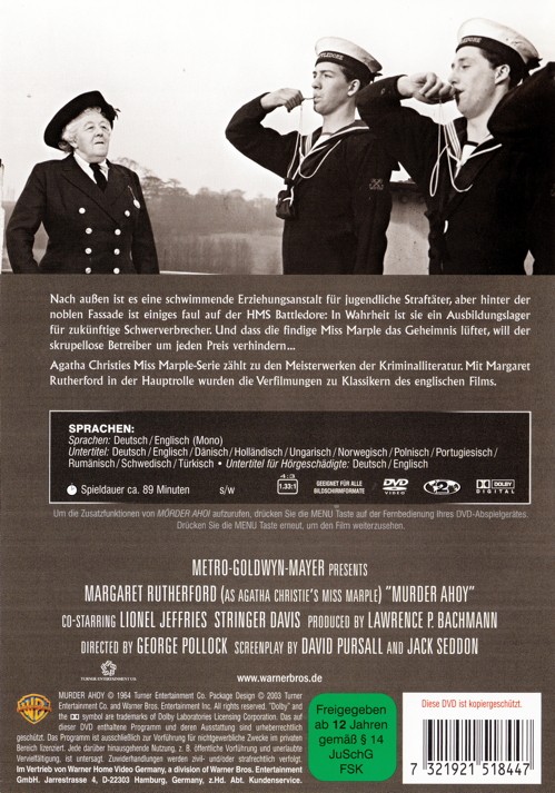Nach aussen ist es eine schwimmende Erziehungsanstalt für jugendliche Straftäter, aber hinter der noblen Fassade ist einiges faul auf der "HMS Battledore" : In Wahrheit ist sie ein Ausbildungslager für künftige Schwerverbrecher. Und dass die findige Miss Marple das Geheimnis lüftet, will der skrupellose Betreiber um jeden Preis verhindern... Agatha Christies "Miss Marple" - Serie zählt zu den Meisterwerken der Kriminalliteratur. Mit Margaret Rutherford in der Hauptrolle wurden die Verfilmungen zu Klassikern des englischen Films.
