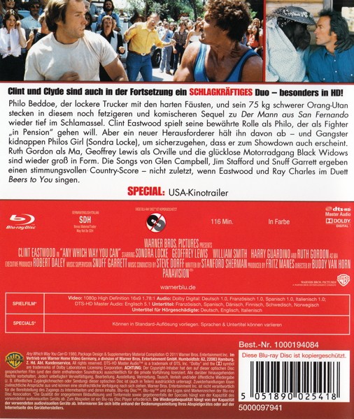 Clint Eastwood, Barry Corbin, Geoffrey Lewis, James Gammon, Julie Brown, Art LaFleur, Charles Walker, Jack Murdock, Michael Fairman, Harry Guardino...William Smith, Jack Thibeau, Ken Lerner, John Quade, Michael Talbott, Michael Currie, Dan Barrows, Al Ruscio, Tessa Richarde, Kent Perkins, Larry Holt, Gary Lee Davis, Lance Gordon, Jerry Brutsche, Robin Menken, Glen Campbell, Orwin C. Harvey, Walter Robles, Sondra Locke, Bill McKinney, Roy Jenson, Anne Ramsey, George Murdock, Michael Cavanaugh, Dan Vadis, Dick Durock, Ruth Gordon, Mark L. Taylor, Peter Hobbs, Sunshine Parker, Reid Cruickshanks, Ann Nelson, Bill Sorrells, John McKinney, Michael Brockman, William O'Connell, Camila Ashland, Weston Gavin, Rebecca Clemons, Logan Ramsey, Michael Reinbold, John Nowak, Dick Christie, Lynn Hallowell, Jim Stafford, Jeremy Smith, Mike Tillman