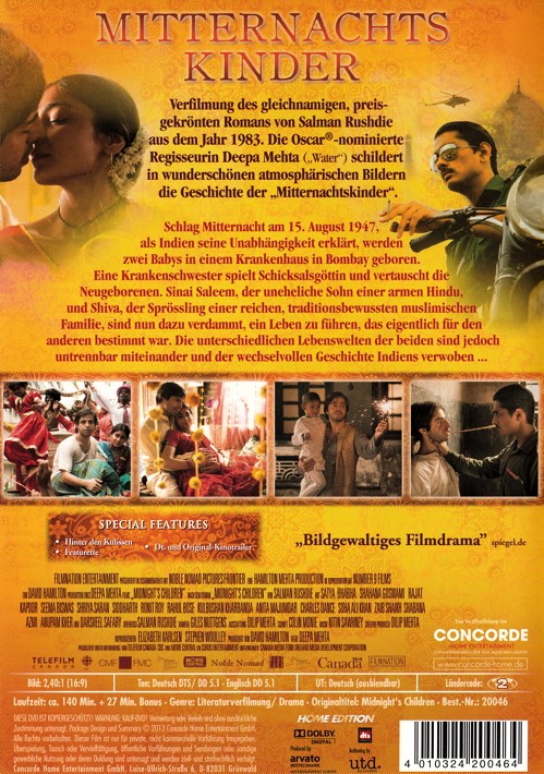 Schlag Mitternacht am 15. August 1947, als Indien seine Unabhängigkeit erklärt, kommen zwei Babys in einem Krankenhaus in Bombay auf die Welt. Eine Krankenschwester vertauscht die Neugeborenen. Saleem, unehelicher Sohn einer armen Hindu, und Shiva, Sprössling einer reichen muslimischen Familie, führen fortan ein Leben, das eigentlich für den jeweils anderen bestimmt war. Eines haben sie jedoch gemeinsam: Wie alle "Mitternachtskinder" besitzen die beiden unter anderem die Fähigkeit, die Gedanken anderer Menschen lesen zu können.