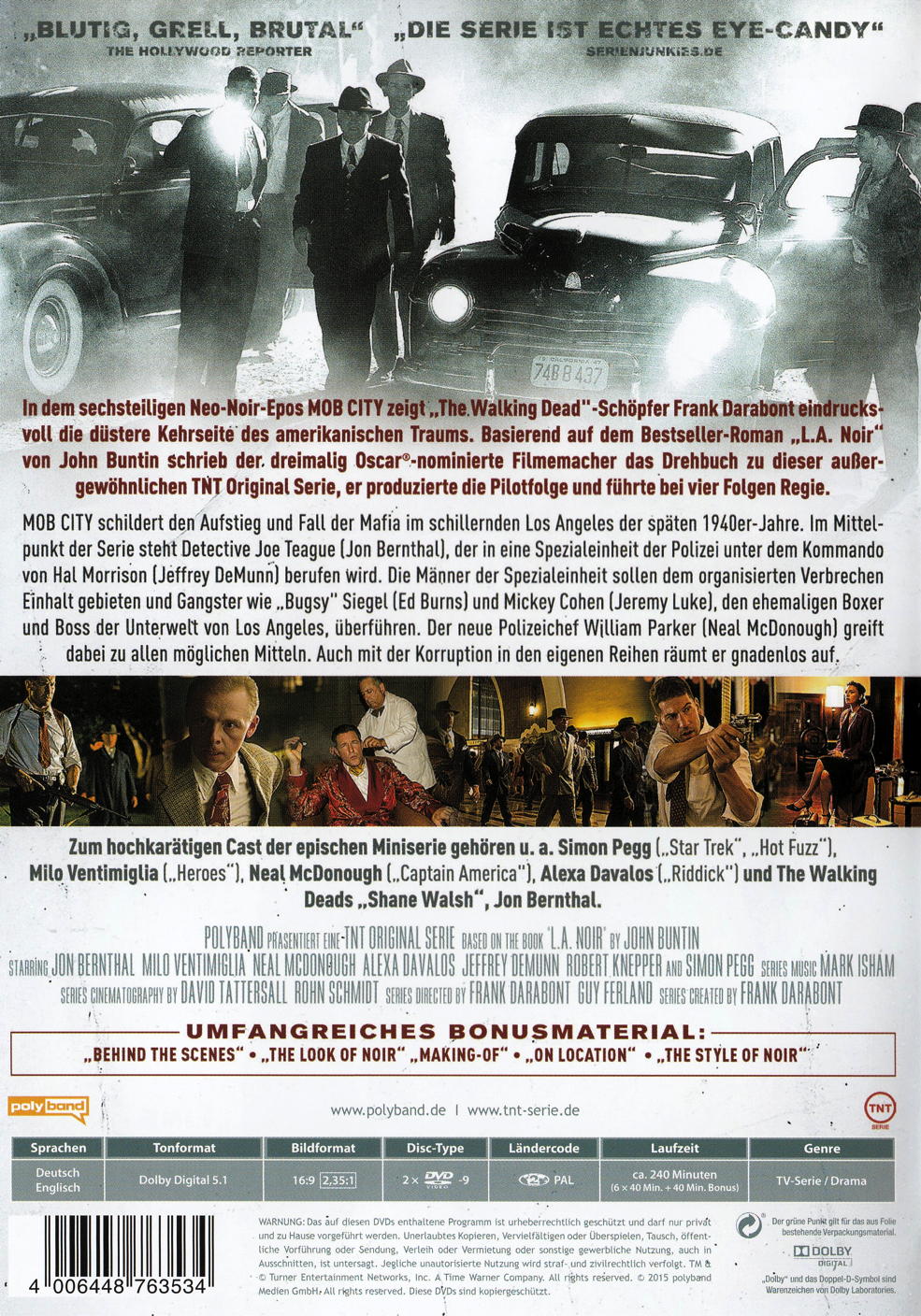Basierend auf dem Roman "L.A. Noir" schildert "Mob City" den Aufstieg und Fall der Mafia im schillernden Los Angeles der späten 1940er-Jahre. Im Mittelpunkt der Serie steht Detective Joe Teague (Jon Bernthal), der in eine Spezialeinheit der Polizei unter dem Kommando von Detective Hal Morrison (Jeffrey DeMunn) berufen wird. Die Männer der Spezialeinheit sollen dem organisierten Basierend auf dem Roman "L.A. Noir" schildert "Mob City" den Aufstieg und Fall der Mafia im schillernden Los Angeles der späten 1940er-Jahre. Im Mittelpunkt der Serie steht Detective Joe Teague, der in eine Spezialeinheit der Polizei unter dem Kommando von Detective Hal Morrison berufen wird. Die Männer der Spezialeinheit sollen dem organisierten Verbrechen Einhalt gebieten und Gangster wie "Bugsy" Siegel und Mickey Cohen, den ehemaligen Boxer und Boss der Unterwelt von Los Angeles, überführen. Der neue Polizeichef William Parker greift dabei zu allen möglichen Mitteln. Auch mit der Korruption in den eigenen Reihen räumt er gnadenlos auf. Doch in "Mob City" treibt jeder ein doppeltes Spiel. Korrupte Polizisten, mörderische Mafiapaten und geheimnisvolle Vamps: In dem sechsteiligen Neo-Noir-Epos zeigt "The Walking Dead"-Schöpfer Frank Darabont eindrucksvoll die düstere Kehrseite des amerikanischen Traums.