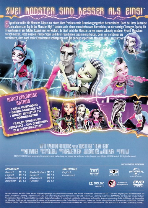Eigentlich wollte die Monster-Clique nur etwas über Frankies coole Gruselvergangenheit herausfinden. Doch bei ihrer Zeitreise zum allerersten Tag in der Monster High landen sie in einem monsterkrassen Horrorlabor, wo der schräge Teenager Sparky die Freundinnen in ein fatales Experiment verwickelt. Er lässt acht der Monster zu vier neuen schaurig-schönen Hybrid-Monstern verschmelzen. Jetzt müssen Frankie Stein und ihre Freundinnen zusammenarbeiten. Denn nur so können sie verhindern, dass noch mehr Experimente schiefgehen und die perfekt unperfekte Monster High zerstört wird