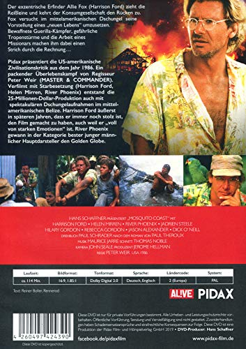 Pidax präsentiert die US-amerikanische Zivilisationskritik aus dem Jahr 1986. Ein packender Überlebenskampf von Regisseur Peter Weir (MASTER & COMMANDER). Verfilmt mit Starbesetzung (Harrison Ford, Helen Mirren, River Phoenix) entstand die 25-Millionen-Dollar-Produktion auch mit spektakulären Dschungelaufnahmen im mittelamerikanischen Belize. Harrison Ford äusserst in späteren Jahren, dass er immer noch stolz ist, den Film gemacht zu haben, auch weil er „voll von starken Emotionen“ ist. River Phoenix gewann in der Kategorie bester junger männlicher Hauptdarsteller den Golden Globe.