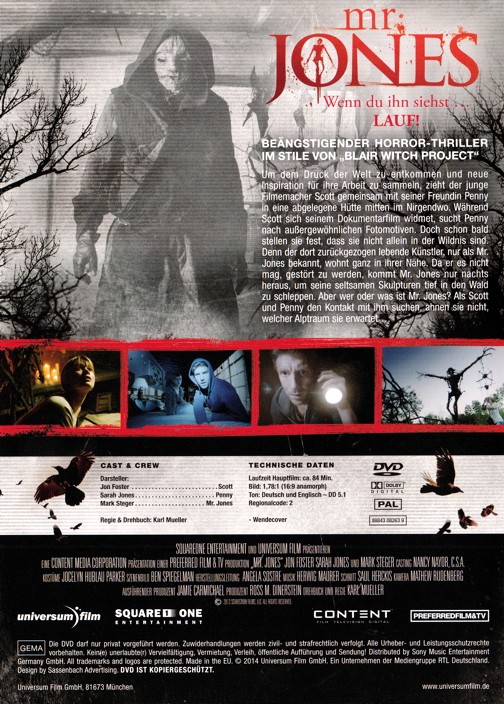 Um dem Druck der Welt zu entkommen und neue Inspiration für ihre Arbeit zu sammeln, zieht der junge Filmemacher Scott gemeinsam mit seiner Freundin Penny in eine abgelegene Hütte mitten im Nirgendwo. Während Scott sich seinem Dokumentarfilm widmet, sucht Penny nach außergewöhnlichen Fotomotiven. Doch schon bald stellen sie fest, dass sie nicht allein in der Wildnis sind. Denn der dort zurückgezogen lebende Künstler, nur als Mr. Jones bekannt, wohnt ganz in ihrer Nähe. Da er es nicht mag, gestört zu werden, kommt Mr. Jones nur in der Nacht heraus, um seine seltsamen Skulpturen tief in den Wald zu schleppen. Aber wer oder was ist Mr. Jones? Als Scott und Penny den Kontakt mit ihm suchen, ahnen sie nicht, welcher Alptraum sie erwartet...