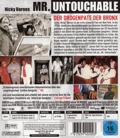 Leroy "Nicky" Barnes ist der erste schwarze Pate von New York. In den 1970er Jahren vom Heroinabhängigen aus kleinsten Verhältnissen aufgestiegen zu einem der berüchtigsten Drogenbosse der US-Geschichte prägt er das Urbild des glamourösen, schillernden Gangsters. Seinen Reichtum und seinen Erfolg stellt er ungeniert öffentlich zur Schau. Als er schließlich dingfest gemacht werden kann und lebenslang in den Knast wandert, packt Barnes nach wenigen Jahren gründlich aus. Er liefert Dutzende Weggefährten einschließlich seiner eigenen Ehefrau ans Messer. Dafür kommt er nach 21 Jahren Haft frei und lebt heute unerkannt irgendwo in den USA. Für den Dokumentarfilmer Marc Levin rekapituliert er seinen Aufstieg und seinen Fall als "Mr. Untouchable".