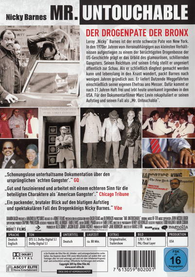 Leroy "Nicky" Barnes ist der erste schwarze Pate von New York. In den 1970er Jahren vom Heroinabhängigen aus kleinsten Verhältnissen aufgestiegen zu einem der berüchtigsten Drogenbosse der US-Geschichte prägt er das Urbild des glamourösen, schillernden Gangsters. Seinen Reichtum und seinen Erfolg stellt er ungeniert öffentlich zur Schau. Als er schließlich dingfest gemacht werden kann und lebenslang in den Knast wandert, packt Barnes nach wenigen Jahren gründlich aus. Er liefert Dutzende Weggefährten einschließlich seiner eigenen Ehefrau ans Messer. Dafür kommt er nach 21 Jahren Haft frei und lebt heute unerkannt irgendwo in den USA. Für den Dokumentarfilmer Marc Levin rekapituliert er seinen Aufstieg und seinen Fall als "Mr. Untouchable".