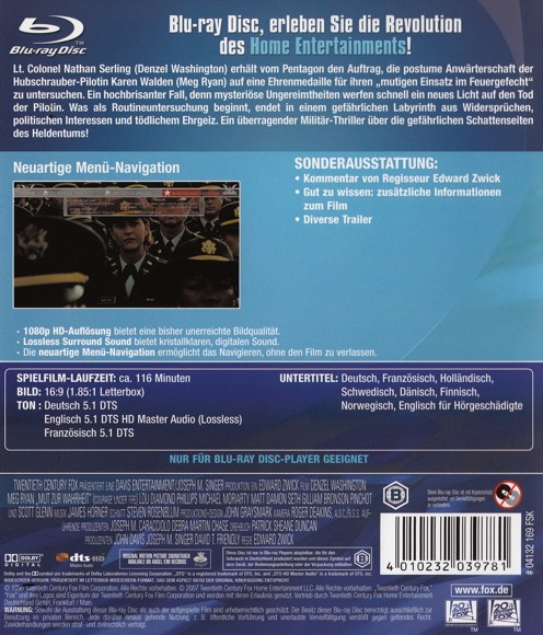Lt. Colonel Nathan Serling (Denzel Washington) erhält vom Pentagon den Auftrag, die postume Anwärterschaft der Hubschrauber-Pilotin Karen Walden (Meg Ryan) auf eine Ehrenmedaille für ihren „mutigen Einsatz im Feuergefecht" zu untersuchen. Ein hochbrisanter Fall, denn mysteriöse Ungereimtheiten werfen schnell ein neues Licht auf den Tod der Pilotin. Was als Routineuntersuchung beginnt, endet in einem gefährlichen Labyrinth aus Widersprüchen, politischen Interessen und tödlichem Ehrgeiz. Ein überragender Militär-Thriller über die gefährlichen Schattenseiten des Heldentums!