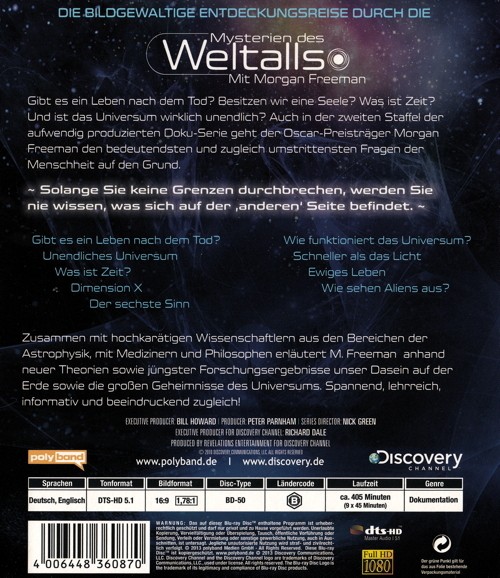 Gibt es ein Leben nach dem Tod? Besitzen wir eine Seele? Was ist Zeit? Und ist das Universum wirklich unendlich? Auch in der zweiten Staffel der aufwendig produzierten Doku-Serie geht der Oscar-Preisträger Morgan Freemanden bedeutendsten und zugleich umstrittensten Fragen der Menschheit auf den Grund.