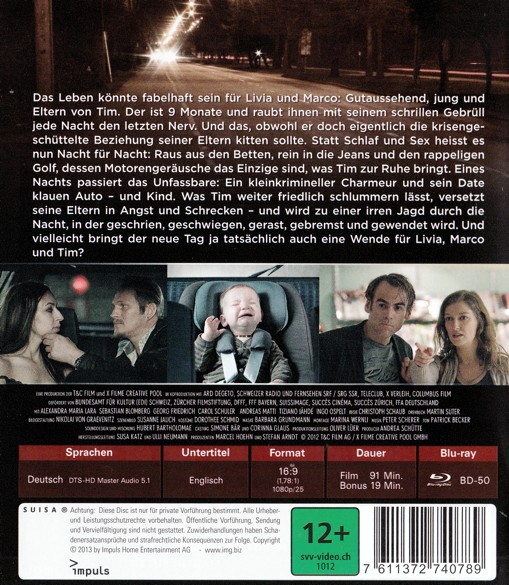 Das Leben könnte fabelhaft sein für Livia und Marco: Gutaussehend, jung und Eltern von Tim. Der ist 9 Monate und raubt ihnen mit seinem schrillen Gebrüll jede Nacht den letzten Nerv. Und das, obwohl er doch eigentlich die krisengeschüttelte Beziehung seiner Eltern kitten sollte. Statt Schlaf und Sex heisst es nun Nacht für Nacht: Raus aus den Betten, rein in die Jeans und den rappeligen Golf, dessen Motorengeräusche das einzige sind, was Tim zur Ruhe bringt. Eines Nachts passiert das Unfassbare: Ein kleinkrimineller Charmeur und sein Date klauen Auto - und Kind. Was Tim weiter friedlich schlummern lässt, versetzt seine Eltern in Angst und Schrecken - und wird zu einer irren Jagd durch die Nacht, in der geschrien, geschwiegen, gerast, gebremst und gewendet wird. Und vielleicht bringt der neue Tag ja tatsächlich auch eine Wende für Livia, Marco und Tim?
