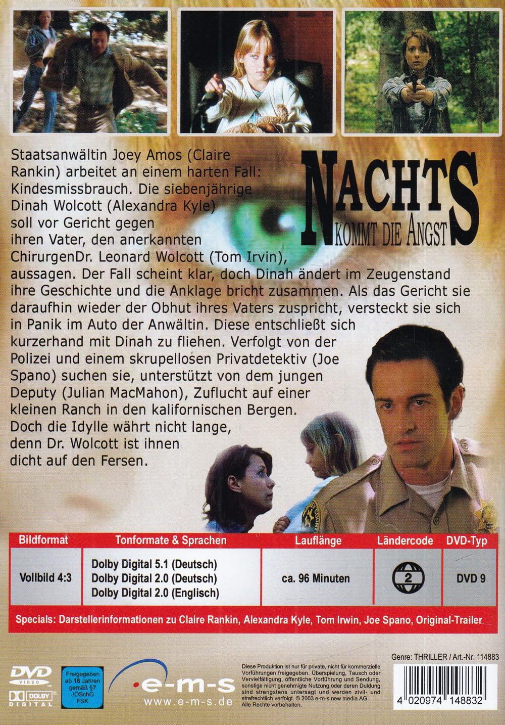 Staatsanwältin Joey Amos bekommt Fälle, die keinem gefallen: Kindesmissbrauch. Die siebenjährige Dinah Wolcott soll vor Gericht gegen ihren Vater, den anerkannten Chirurgen Dr. Leonard Wolcott aussagen. Der Fall scheint klar, doch Dinah ändert im Zeugenstand ihre Geschichte und die Anklage bricht zusammen. Als das Gericht sie daraufhin wieder der Obhut ihres Vaters zuspricht, versteckt sie sich in Panik im Auto der Anwältin. Diese entschliesst sich kurzerhand mit Dinah zu fliehen. Verfolgt von der Polizei und einem skrupellosen Privatdetektiv suchen sie Zuflucht auf einer kleinen Ranch in den kalifornischen Bergen. Doch die Idylle währt nicht lange, denn Dr. Wolcott ist ihnen sicht auf den Fersen...